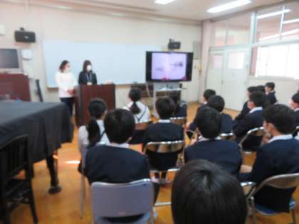 卒業を目の前に、6年生に柏里小学校図書ボランティア「本の森 としょとしょ」の皆さんから最後の読み聞かせをしていただきました。