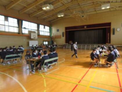間の休憩時間には、運動場で宝さがしゲームが行われていました。
