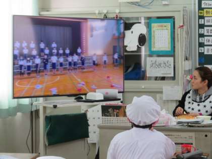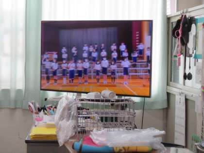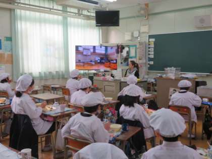 2組でも、6年生に向けての自分たちの映像を視聴しながら、黙食・完食でしっかりと食べていました。