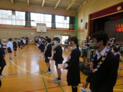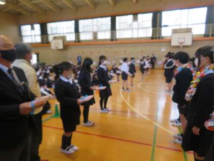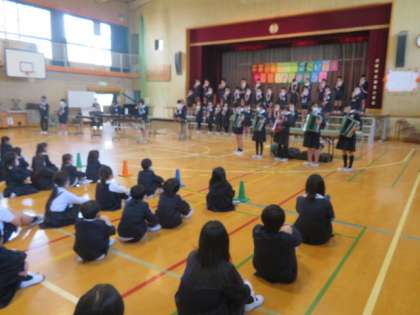 演奏に続いて、6年生から各学級、校長にも手作りぞうきんのプレゼントがありました。