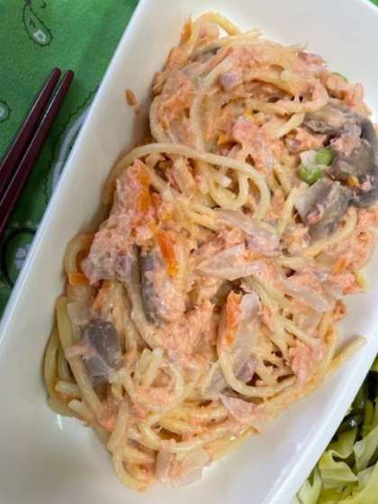 さけのクリームスパゲッティは、さけがいっぱい入っており濃厚な味わいでとてもおいしくいただきました。