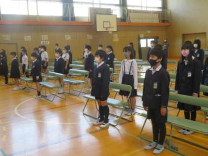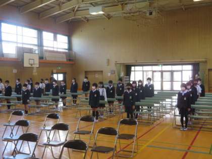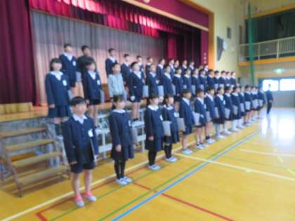 卒業式本番を明後日に控え、今日は5年生も参加をして(本番は、5年生の参加はありません)卒業式の予行演習を行いました。