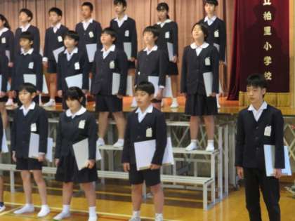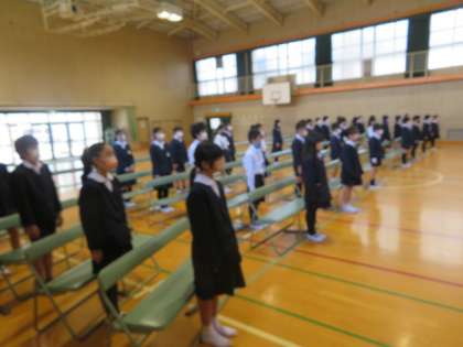 卒業式がどんなものか、卒業証書授与はどのようにするのか、5年生は6年生の様子を観察すると同時に6年生からいろいろなことを引き継ぐ機会ととらえて行いました。
