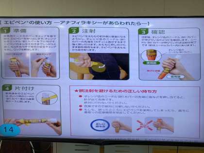 食物アレルギーに関する研修会を開催いたしました。また、いざという時に教職員全員が使えるようにエピペン研修も行いました。