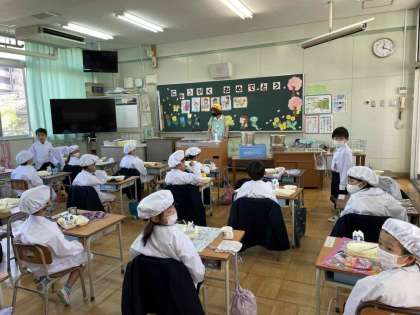 カレーライスと聞いて、とても喜んでいる児童が多かったです。また、調理員さんがニンジンを素敵な型にカットしてくれていて、それが入っていると、「ラッキーニンジン!」と喜んでいました。