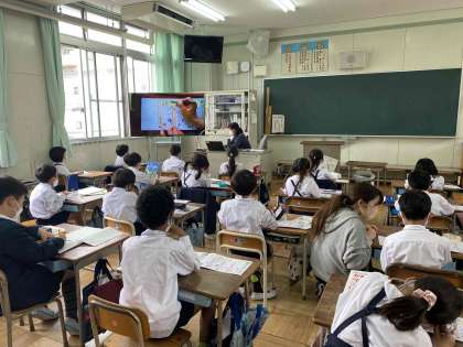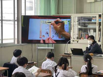 大型テレビを活用して一画一画丁寧に書く練習をしていました。