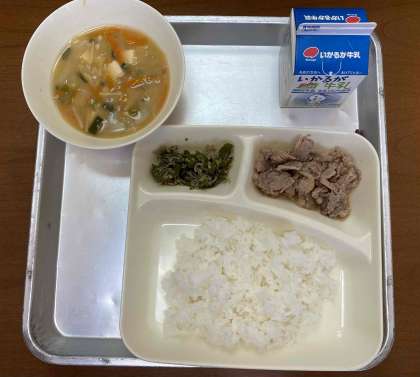 今日はじゃこピーマンが人気で、「おいしいわぁ!もっとほしいわぁ」と言っている児童が多かったです。