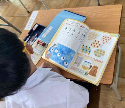 算数ではバナナなどの数を数えながら数字の書き方などを学習しています。