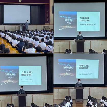 どの学級の目標も素晴らしかったです。一人一人の目標、学級目標を達成する事ができれば、学校の目標も達成できるという話をしました。