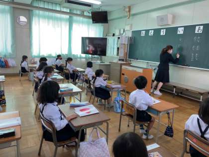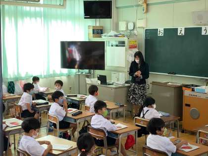 「あいうえお」のつく ことばをあつめようという学習を行いました。いつもより緊張した表情でしたが、しっかりと学習している様子を見て頂くことができました。