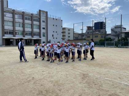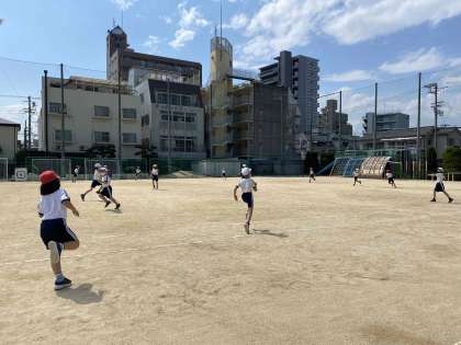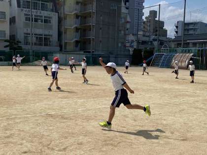 今日は鬼遊びをしました。必死になって逃げ回っていたので、子どもたちは汗だくです。でも、もう一回コールが出るほど楽しんでいました。