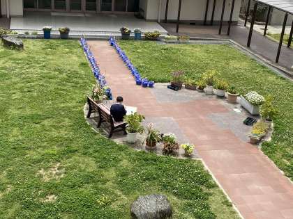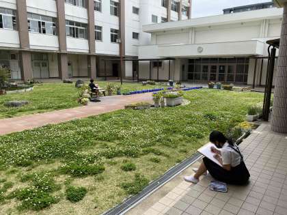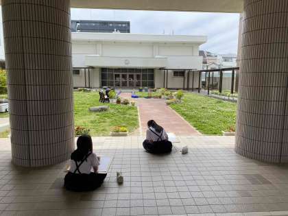 学校の中で好きな風景をそれぞれが選んで描いています。美しい中庭を描いている児童が多かったです。
