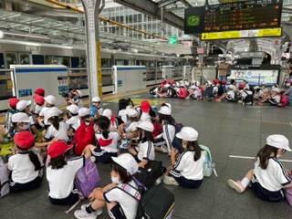 お弁当のあと、扇町公園で遊びました。関西TV前で記念写真を撮り、帰りました。少し疲れた2年生です。
