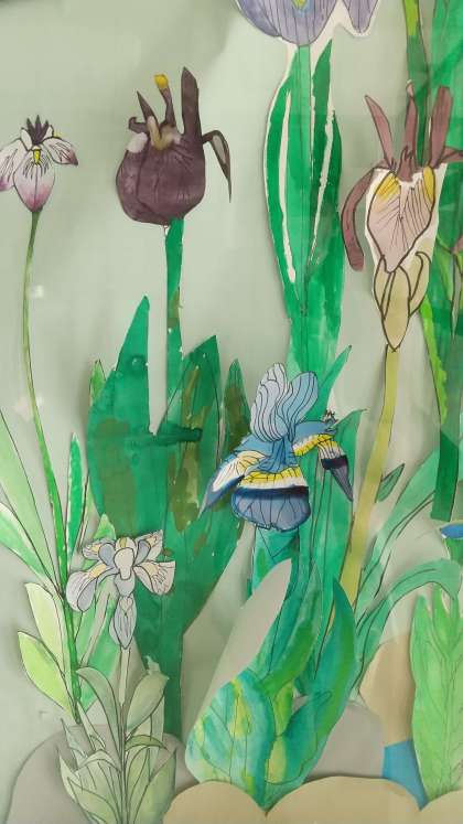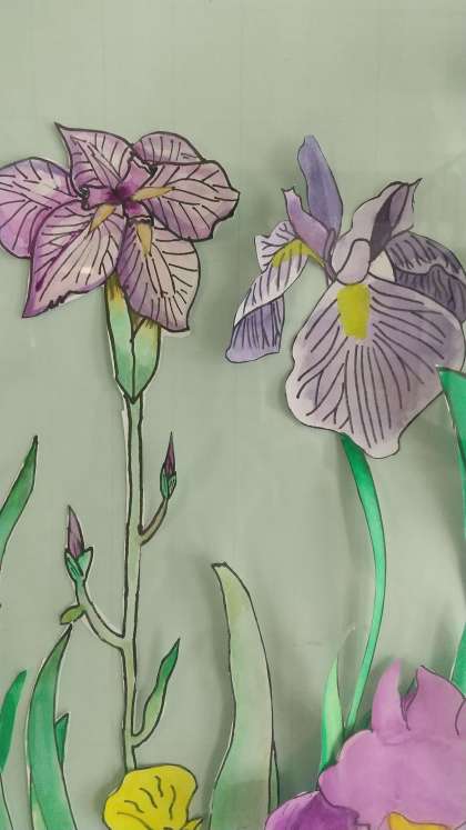 平安時代から邪気を祓うとして、端午の節句に飾ったりお風呂に入れたりする菖蒲の花を、一人ひとりよく見て描きました。