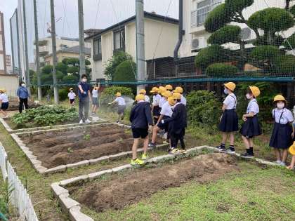 今日は、学習園にゴーヤやヘチマなどを植えました。しっかりお世話しながら 観察学習を進めていきます。