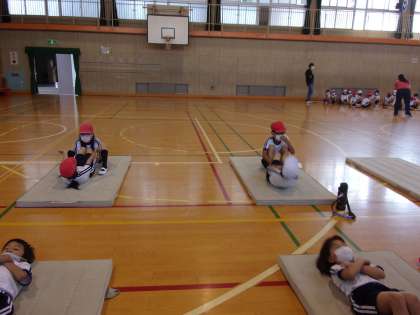 上体おこし、ソフトボール投げ、長座体前屈・・・をしました。