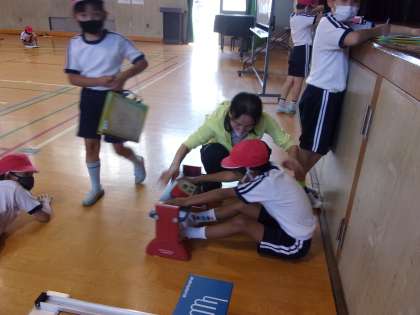 5年生のお姉さん、お兄さんが付き添って測ってくれました。