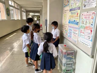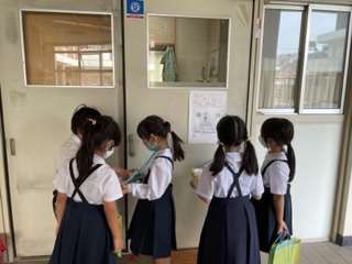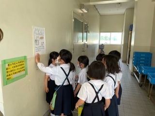 2年生が1年生に、学校のいろいろな教室のことをやさしく教えていました。これで1年生も学校のこと、くわしく分かったかな?