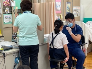 今日は12日に引き続き2.5年生の歯科検診です。食後にしっかり歯を磨いてから診てもらっています。