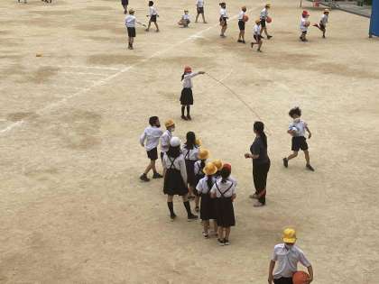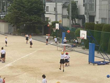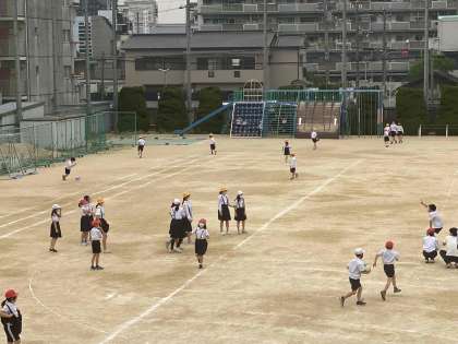 今日は昨日と違って過ごしやすい天候だったので、たくさんの児童が運動場に出て遊んでいました。