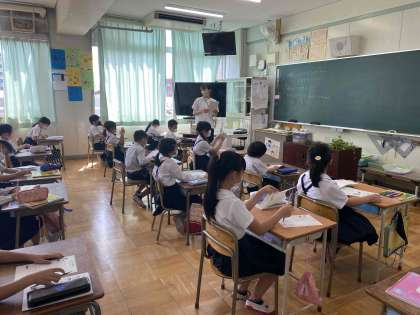 モンシロチョウやアゲハ蝶の幼虫を観察しました。そして観察記録を書きました。とても上手に観察できています。