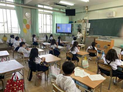 今日は英語を頑張りました。1年生とは思えない上手な発音でびっくりしました。また、単語もよく理解しており、繰り返し学習の大切さが改めてわかりました。