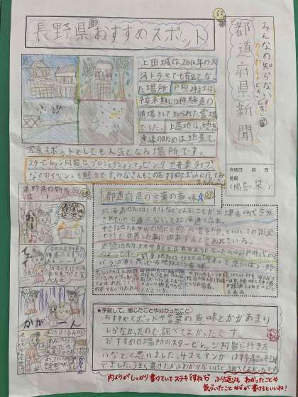 内容も楽しく工夫されていたので、読んでいて楽しかったです。教室に掲示されていますので、学校にお越しの際はご覧ください。