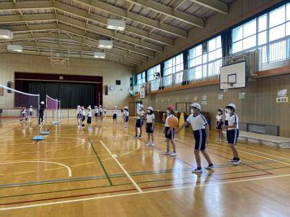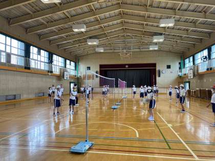 講堂に行くと、6年生がバレーボールをしていました。声を掛け合いながら上手にやっていました。