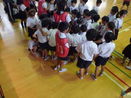 18日(木)児童集会は、集会委員が言った特徴にあてはまる人のところに集まるというゲームでした。はじめに「6年生女子に集まれ!!」からはじまり、「髪の毛をピン止めでくくっている人に集まれ!!」「黒い靴下をはいている人に集まれ!!」「「眼鏡をかけている人に集まれ!!」「男の先生に集まれ」など次々と出され、最後は、「自分の班のリーダーに集まれ!!」となり、班で集まって終わりとなり、きれいな流れで終了しました。