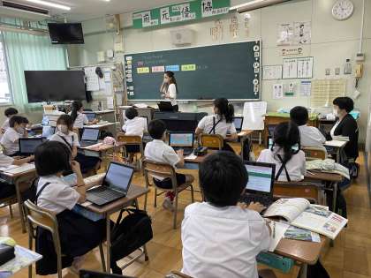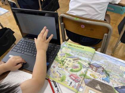 社会科の学習で一人一台pcを活用して調べ学習を行います。