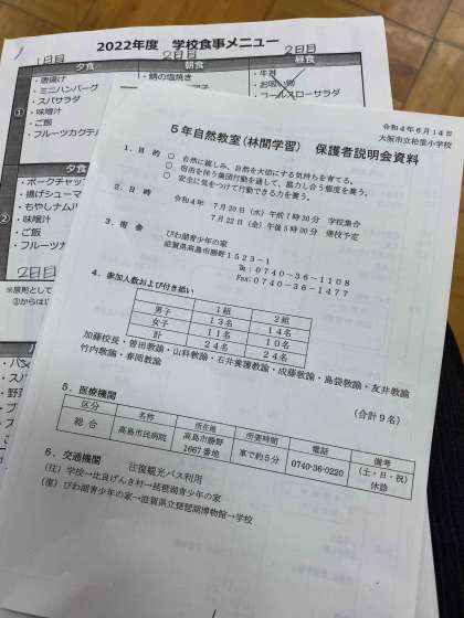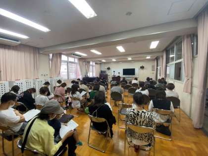学習参観の後、多目的室で林間の説明会が開催されました。初めての宿泊行事なので、子どもたちも楽しみにしていることと思います。怪我なく病気なく安全に過ごせるようにしっかりと計画していきたいと思います。