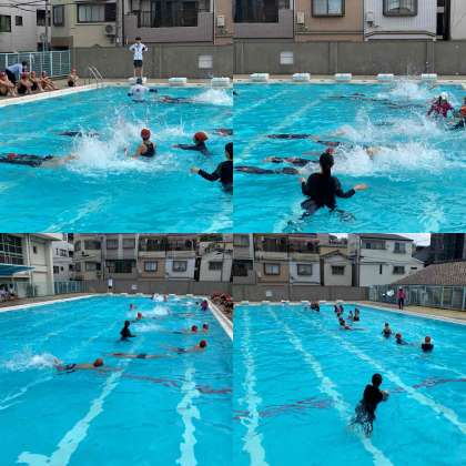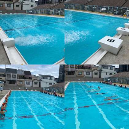今日の午前中は生憎の雨でしたが、昼から気温や水温が規定を超え、体感も暖かかったので、予定通りプール開きとなりました.初回は6年生です。