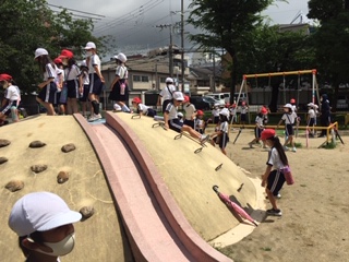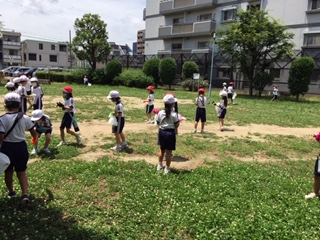 今日はよいお天気だったので、柏里小学校周辺の公園へ行きました。町探検を兼ねて、それぞれの公園にはどんな遊具があるか、どんな遊び方ができるかなど考えながら回りました。最後に、公園でゴミを拾い、公園も心もすっきりして帰りました。