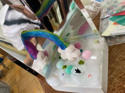 ミラー(鏡)を利用して作品を作ります。どううつるかをよく考えながら試行錯誤して取り組んでいます。