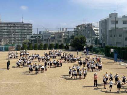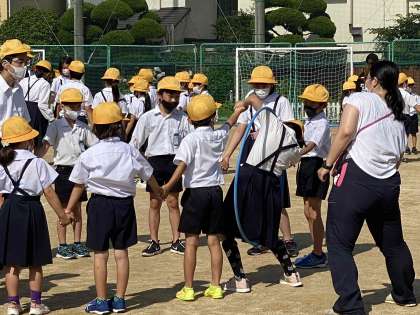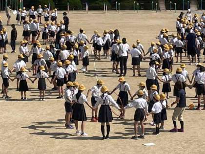 今日の児童集会はオンラインではなく、運動場で行いました。内容はたてわり班で輪になって順番にフープをくぐっていくゲームでした。久しく行っていなかった対面での異学年交流を通して、より結束力の高い柏里小をめざしていけたらと思います。