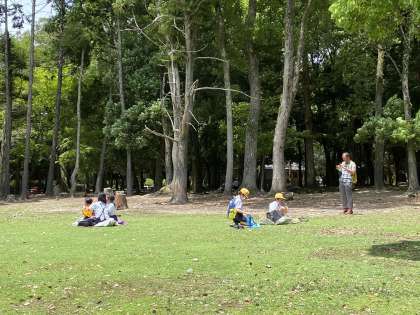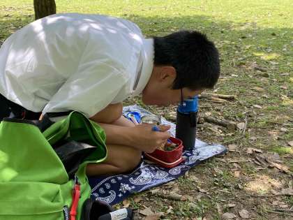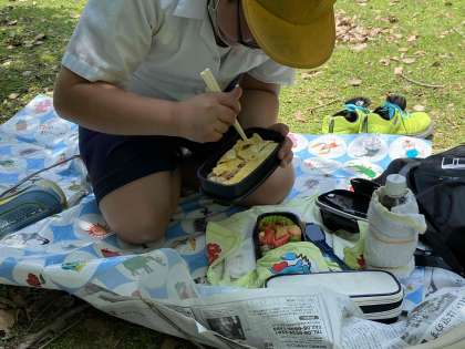 お楽しみのお弁当タイムです。広場の木陰を探して食べているチームが多かったです。朝早くからのお弁当づくりありがとうございました。