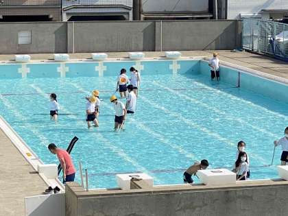15日から始まったプール学習ですが、雨の影響をあまり受ける事なく順調に学習を進めています。