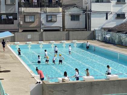 そして、昨日は水を抜いて清掃を行い、6年生の児童がお手伝いをしてくれました。とても綺麗になったので、また来週から気持ち良く入水できます。みんなありがとう!