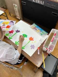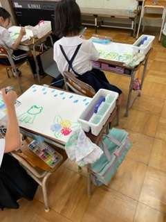 ?私の6月の絵というテーマで思い思いの6月を絵の具で表現しました。