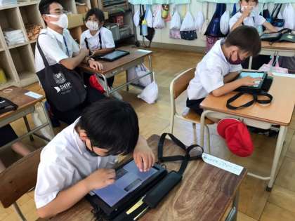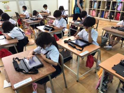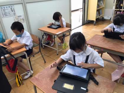 タブレットで、学校のホームページを見たり、心の天気を入力したり、学習アプリで学習したりしました。