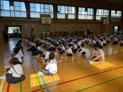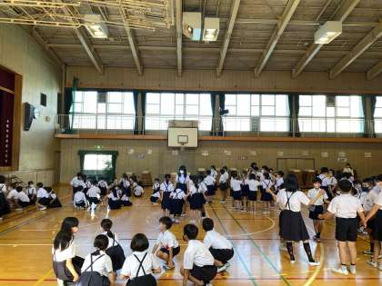 集会委員とのじゃんけん大会を行いました。地域班で協力して行うことができていました。