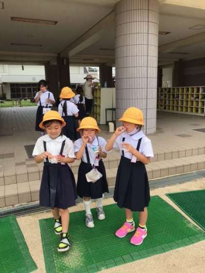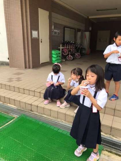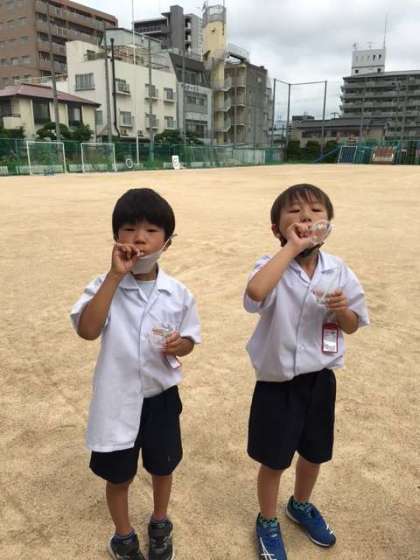 生活科でシャボン玉を飛ばしました。はじめは強く吹きすぎて、飛ばない子もいましたが、慣れて来ると上手にシャボン玉を作っていました。