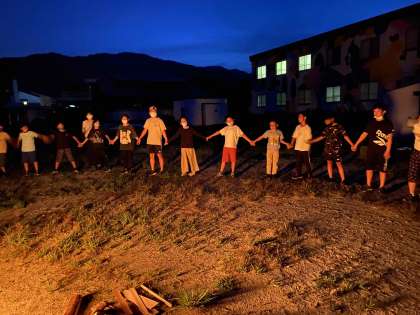 夕食後はキャンプファイヤーをしました。大盛り上がりで少し時間が遅くなりましたが、子どもたちにとって貴重な体験になったことと思います。また、互いに認め合える素敵な一面も見られて良かったです。
