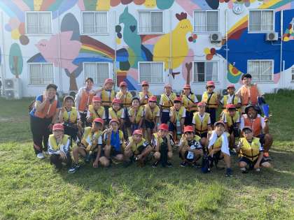 林間学習 カッター後の集合写真