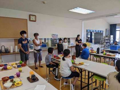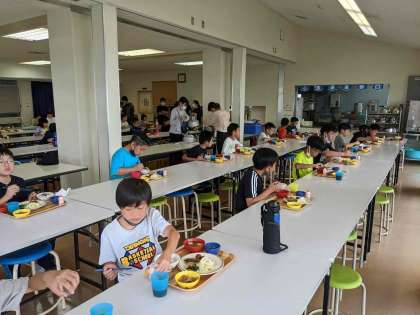 2日目の朝食です。多くの児童が完食する事ができました。また、昨日よりいろいろな部分で成長が感じられます。今日1日の活動を通してさらに成長できるように声かけしていきたいと思います。