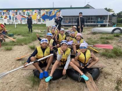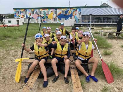 林間学習2日目 いかだ完成