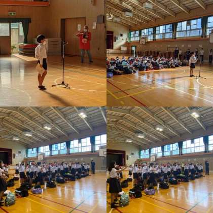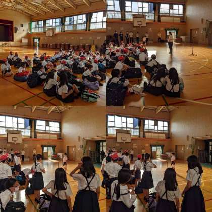 帰校式では、校長より林間学習の学年のめあて「友だちの持ち味を見つけ、認め合い、最高に楽しい林間学習にする」ということについて、3日間かけて十分に達成できたという話と、この貴重な経験を今後の学校生活に生かしてほしいという話がありました。また、児童代表のあいさつでは、初日のキャンプファイヤーの中で本人が語った「けんかがない思いあえるクラスにしたい」という目標について、この林間学習を通して「そのようなクラスになってきた」という熱い思いを話してくれました。帰校式での定型文ではなく、自分の言葉で学年や出迎えてくれた保護者の皆さんに対して伝えてくれたことに本当に感動しました。2学期以降のさらなる成長に期待し、見守っていきたいと思います。保護者の皆様、林間学習に至るまでのご準備やお声がけなどありがとうございました。