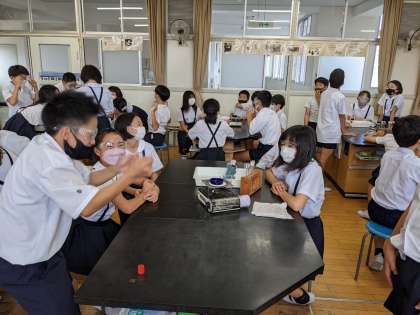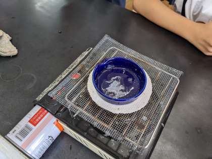 1組、2組ともに実験をしました。課題は、見た目、におい、蒸発皿に残った個体等で水よう液を区別するという学習です。どんな性質があるのか、実験を通して理解を深めたいと思います。