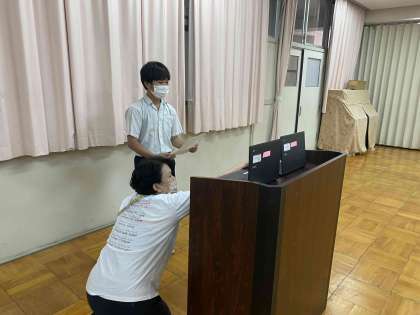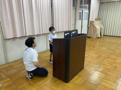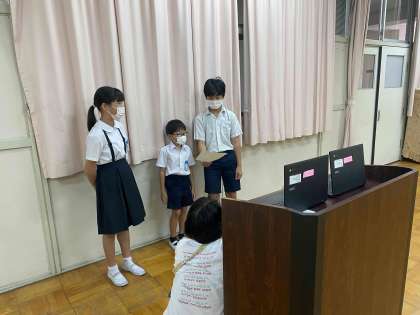 きょうの児童集会は「言葉あてゲーム」オンラインでした。集会委員会の児童が同時に3つの言葉を言って何を言っているのか、当てるゲームです。
