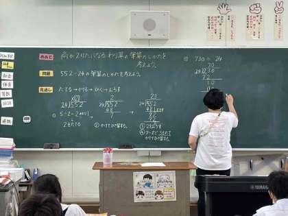 商が2桁になるわり算の筆算を学習しています。慣れるまで繰り返し繰り返しの練習です。
